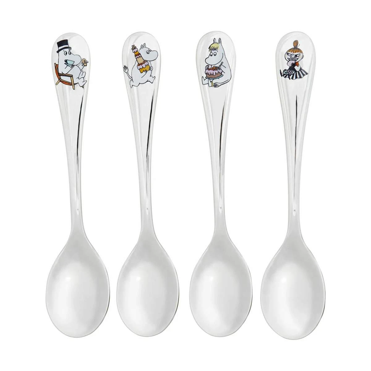 Tilføj disse fine Mumi Fest teskeer til din samling, og lad den festlige stemning brede sig. På teskeerne er der fine motiver af Mumifamilien fra Mumidalen – Mumifar, Mumitrolden, Snorkfrøkenen og lille My.