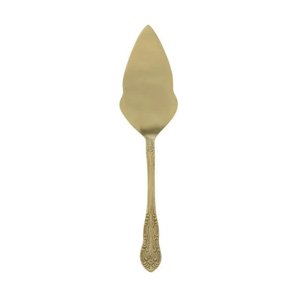 Kagespaden er håndhamret i en smuk messingfarve med præget mønster. Med sine unikke detaljer, vil den tilføje et feminint udtryk på et hvert kagebord.