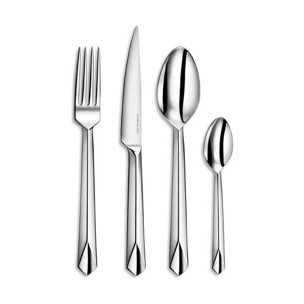 Sættet består af 4 x gafler, 4 x spiseskeer, 4 x teskeer i 18/10 rustfrit stål, og 4 x knive i 18/0 rustfrit stål. Det betyder, at bestikket er særlig modstandsdygtigt, hvilket gør det perfekt til hverdagen.