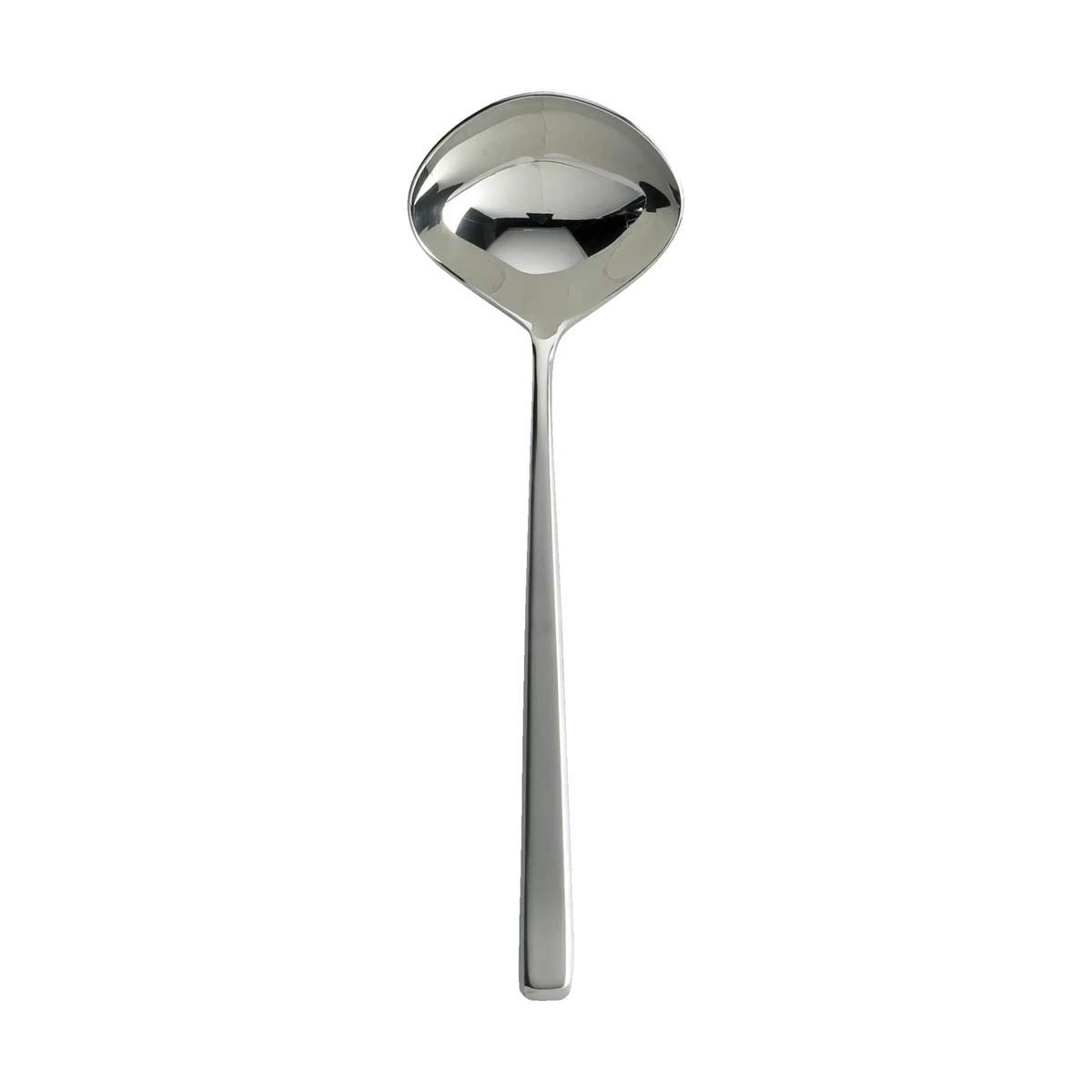 Server god sovs til kartoflerne med Fuga sovseske fra Gense. Fuga er et slankt bestiksæt, der med sine bløde linjer ligger godt i hånden. Med sovseskeen er det nemt at servere bearnaise, pebersovs eller en god whiskysovs til bøffen. Du kan også finde sovseskeen frem fra skuffen, når du serverer kirsebærsovs til risalamande eller smeltet chokolade til vaniljeisen.
