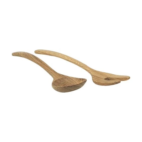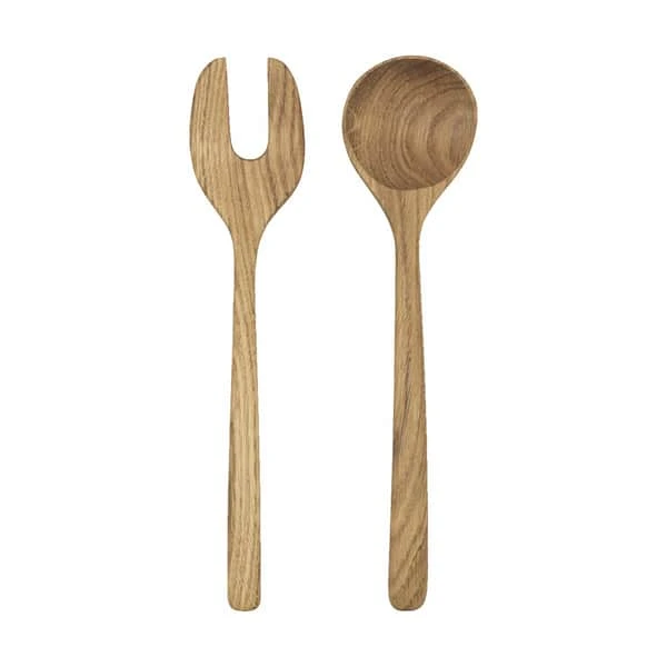 Inviter naturen til bords med salatbestikket fra Kay Bojesens Menageri-serie. Serveringssættet er udformet i egetræ og med sans for det ædle håndværk. Træet er et organisk materiale, og Ikke to sæt er ens. Kombiner sættet med andre naturnuancer på bordet eller bryd en stringent borddækning med et organisk look.